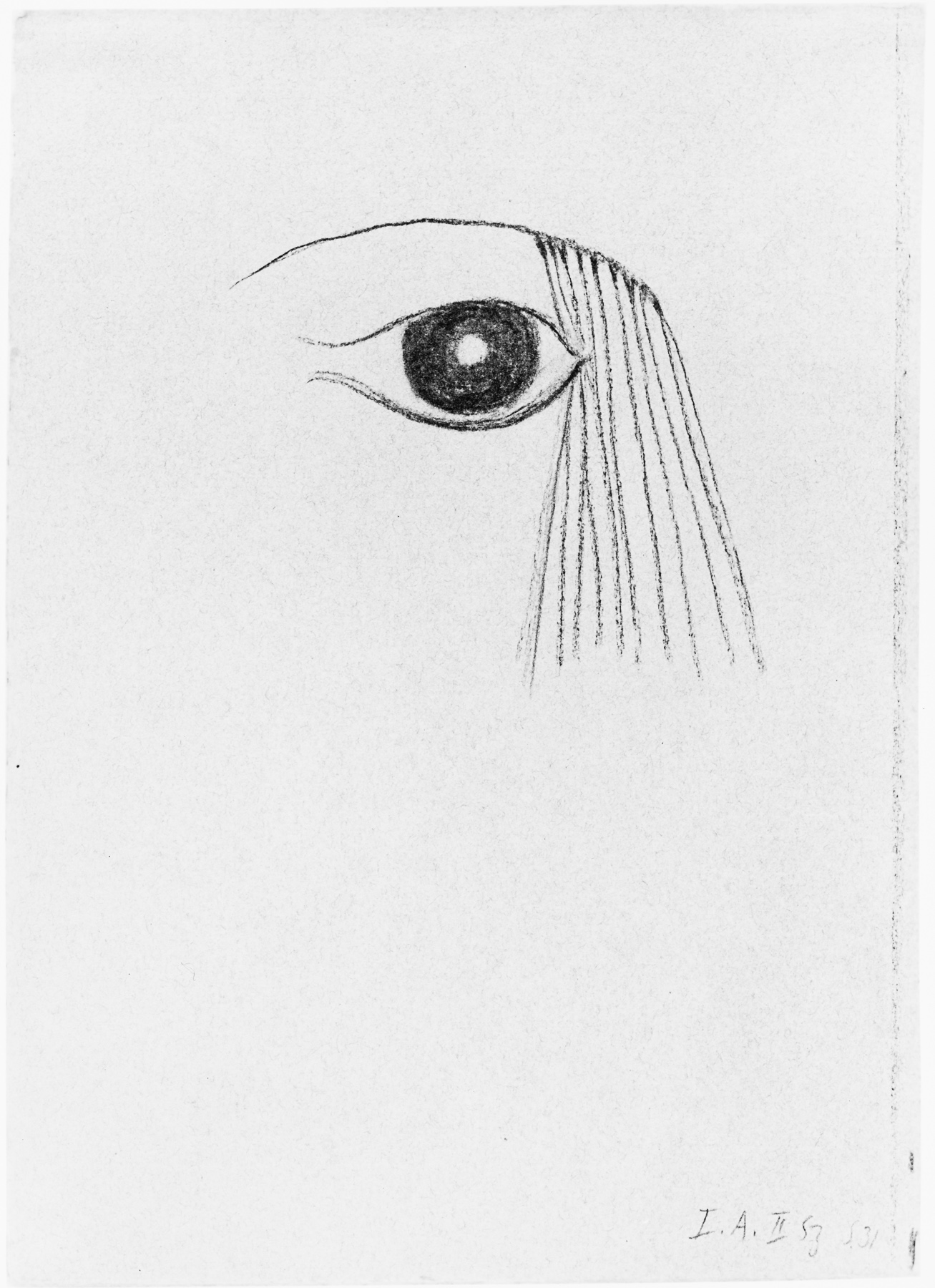 Kohle, fixiert, am Rand r. Einfassungslinie in Kohle, auf lichtblauem Ingres-Bütten