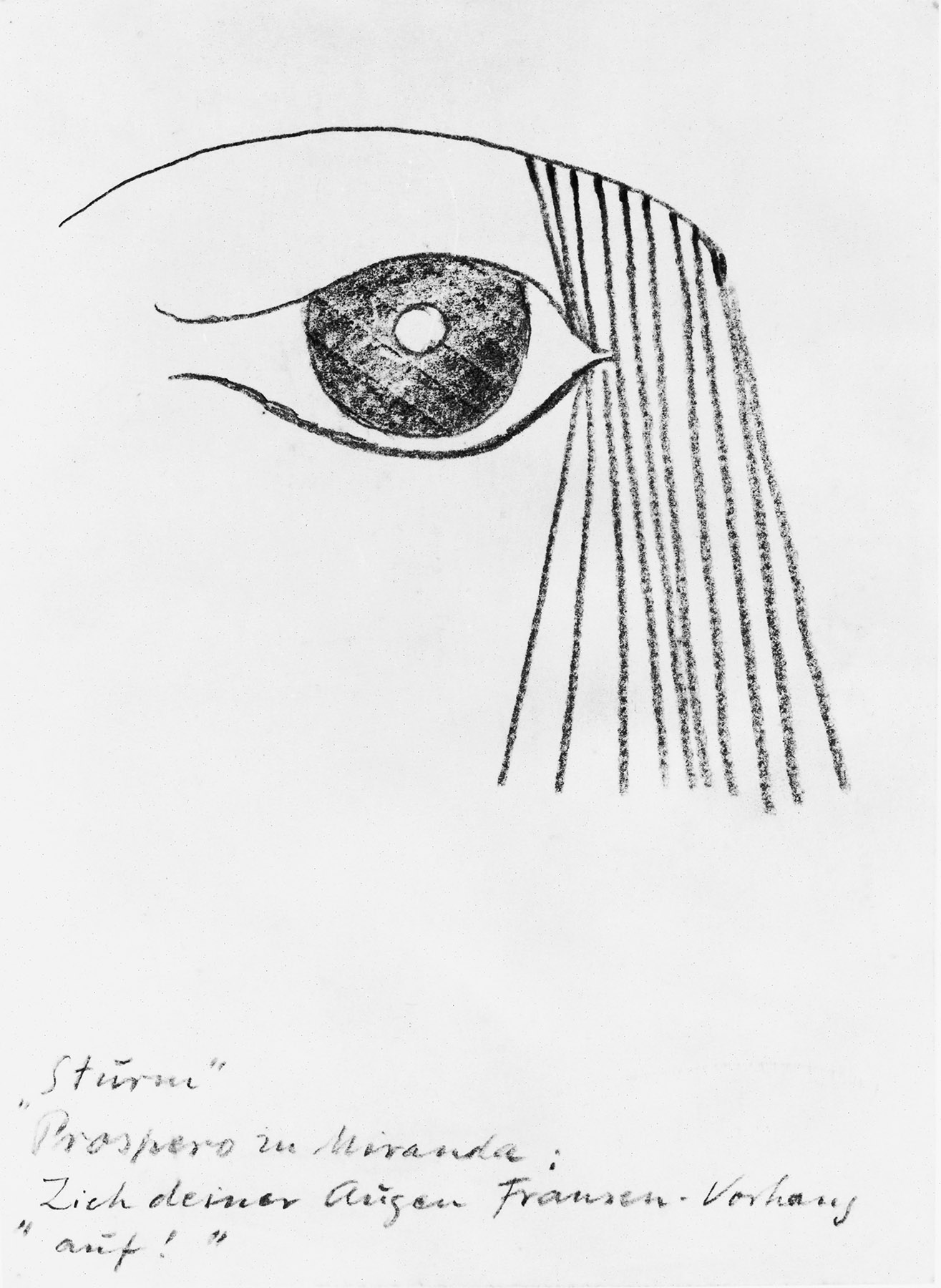 Teil jener früheren Serie, die sich noch im Nachlaß befindet. Die Textzeilen werden als graphische Elemente in die Komposition einbezogen, vgl. Z 1298.