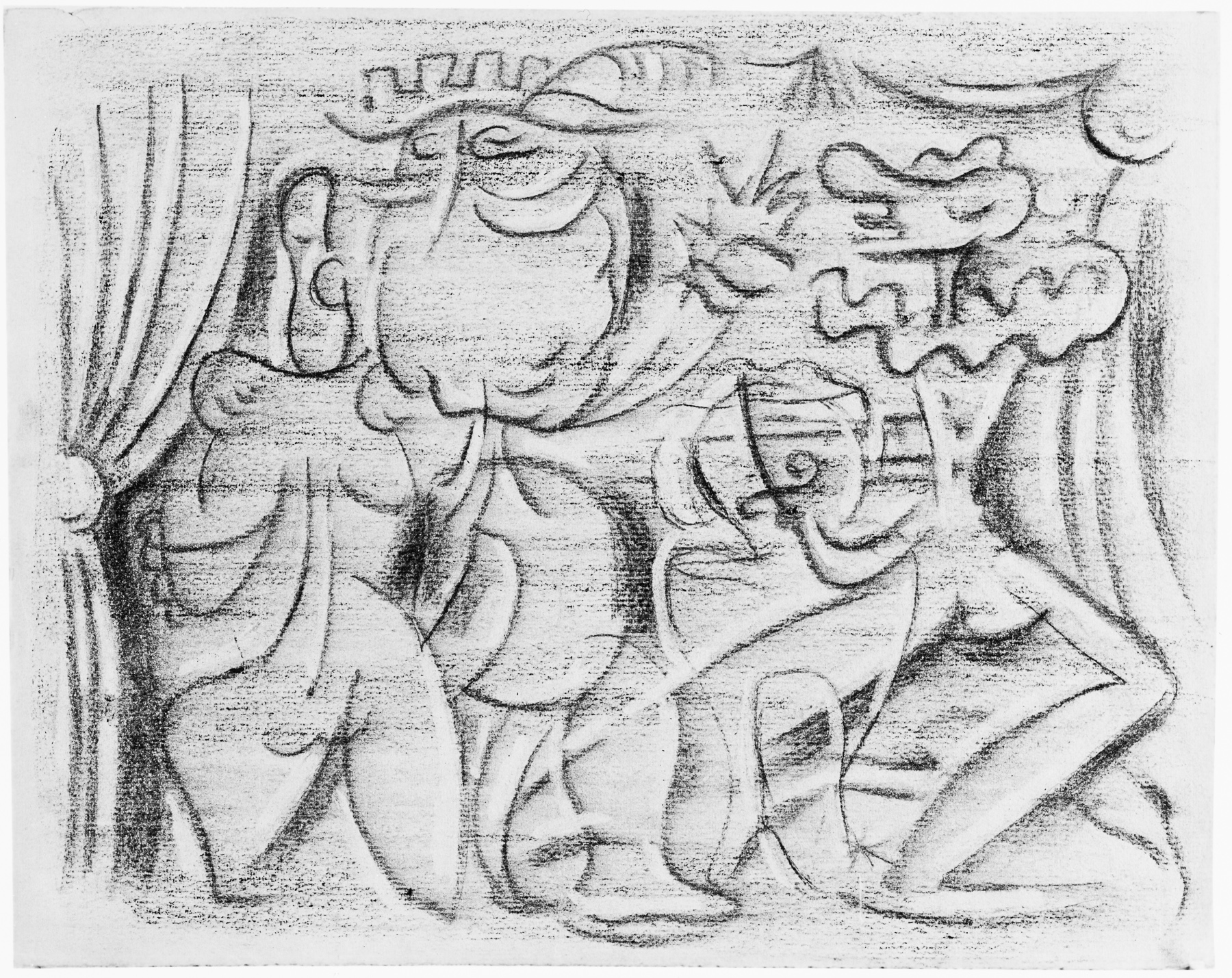 Kohle, gewischt, radiert, fixiert, auf chamoisfarbigem Ingres-Bütten
