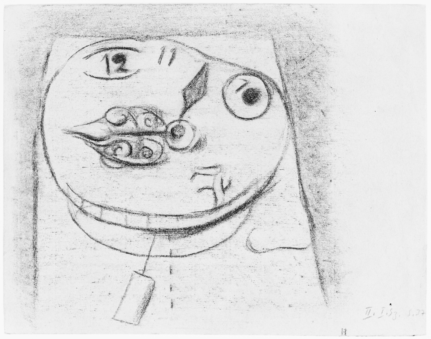 Kohle, z. T. gewischt, fixiert, auf lichtblauem Ingres-Bütten