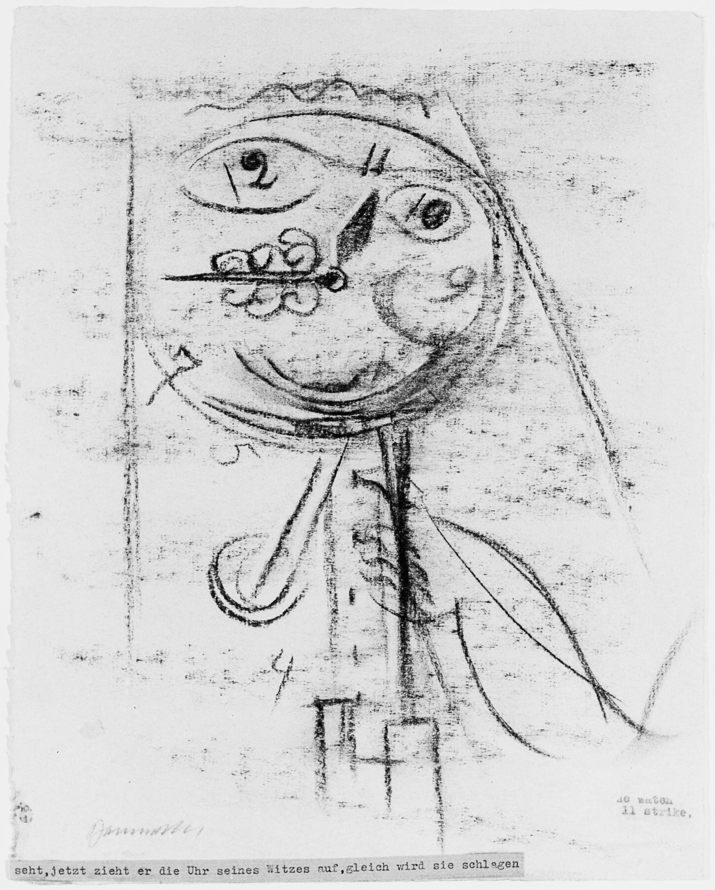 Am Rand l. und r. u. Klebstoffreste mit Abdruck des engl. Textzettels von dessen ehem. Anklebung. Bräunung durch Fixativ.