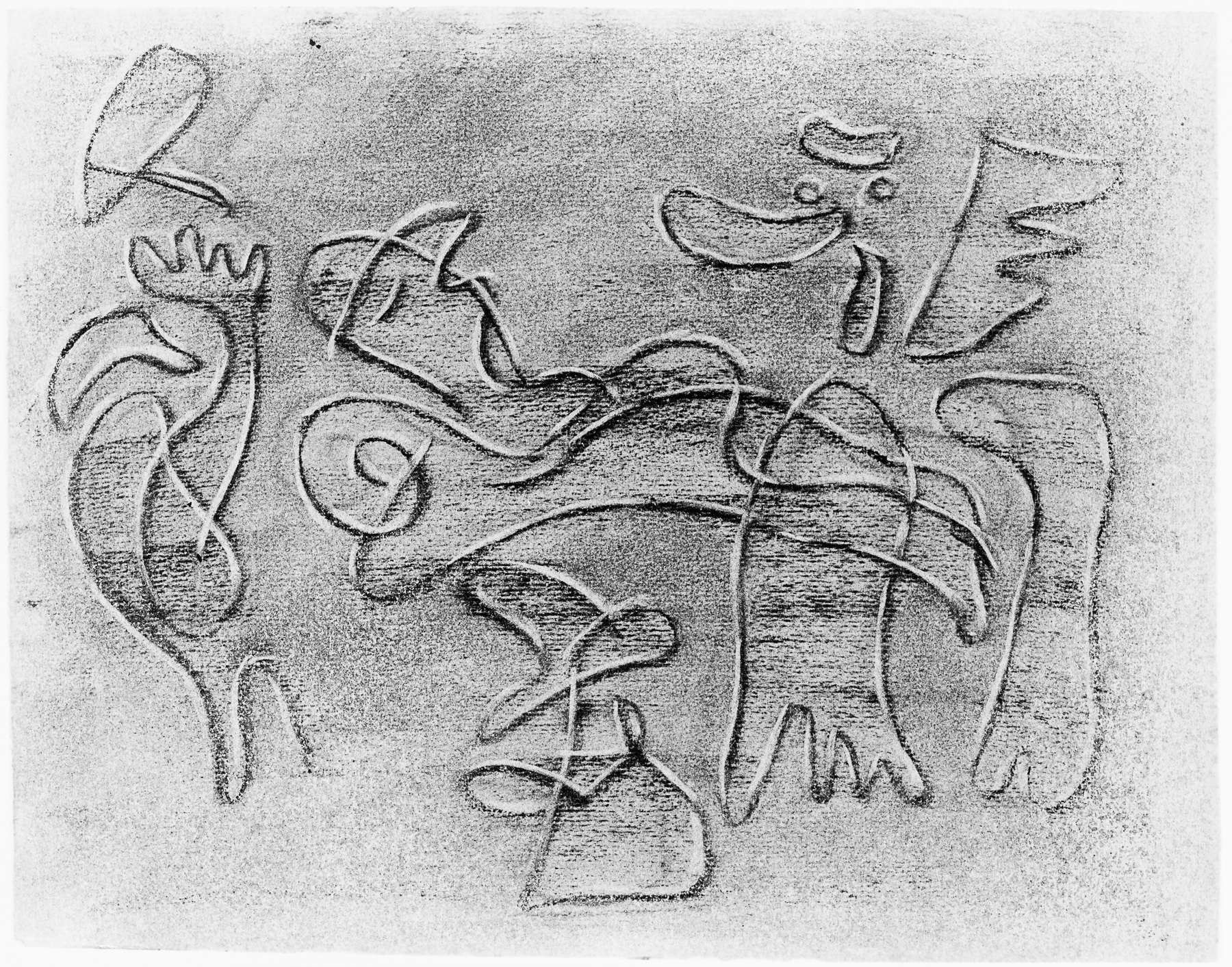 Kohle, gewischt, radiert, fixiert, auf grauviolettem Ingres-Bütten