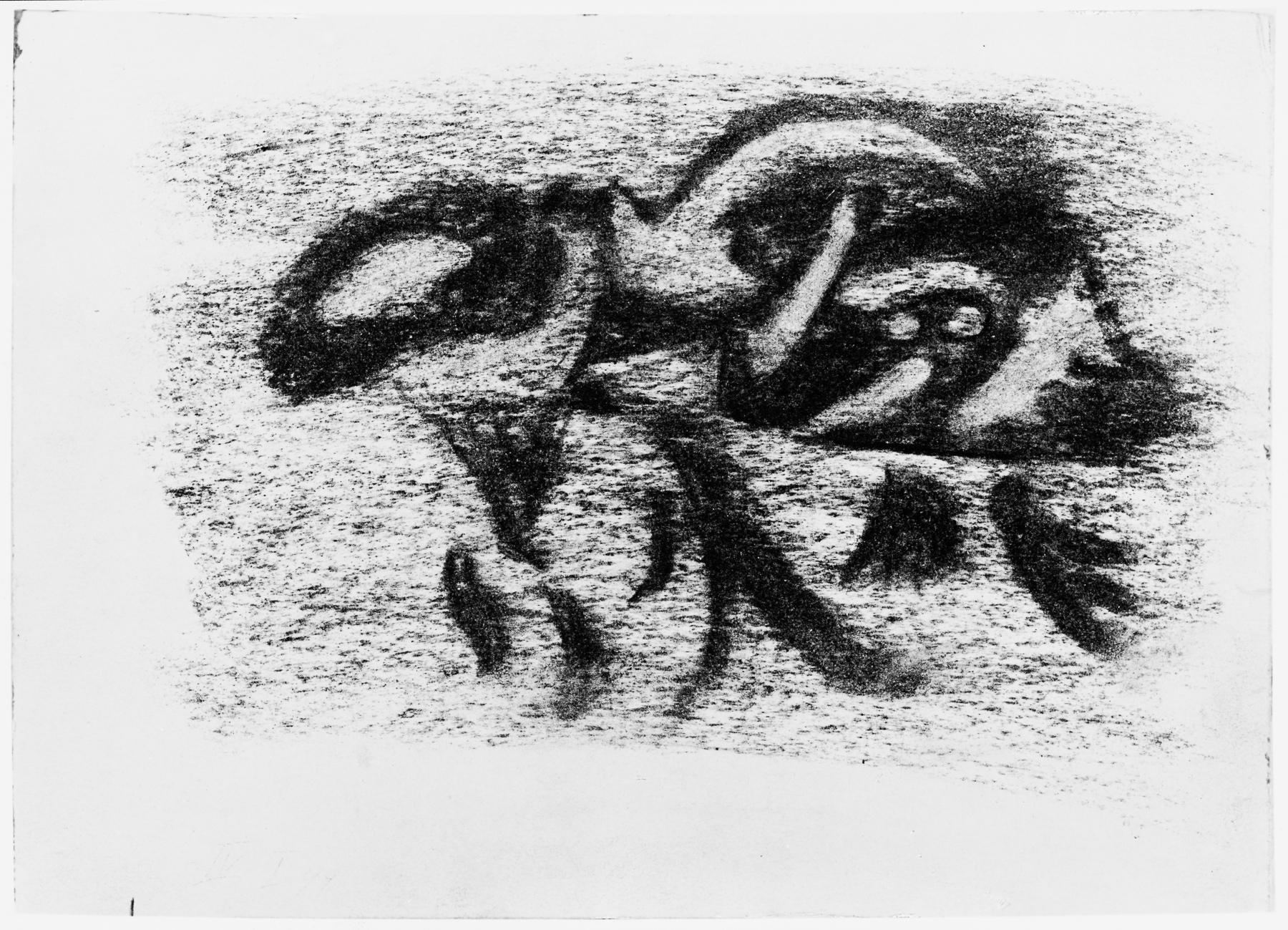 Kohle, z. T. gewischt, fixiert, auf chamoisfarbigem Zeichenkarton