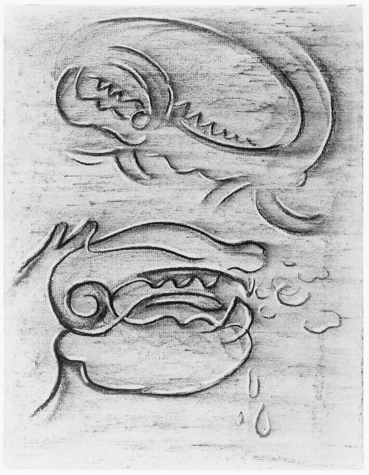 Kohle, gewischt, radiert, fixiert, auf rosafarbigem Ingres-Bütten mit Wz. r. o.: Hahn im Kreis