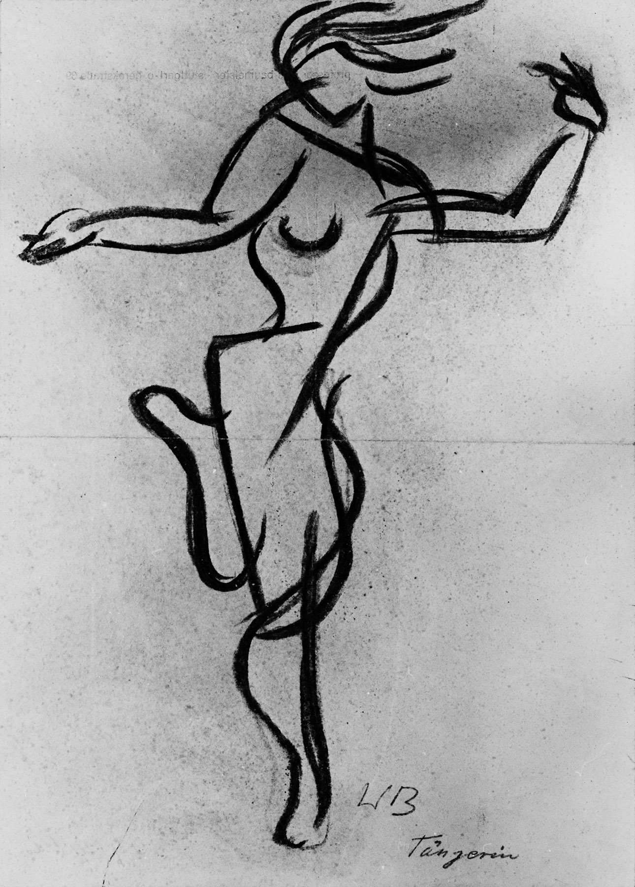 Kohle, fixiert, auf chamoisfarbigem Schreibpapier