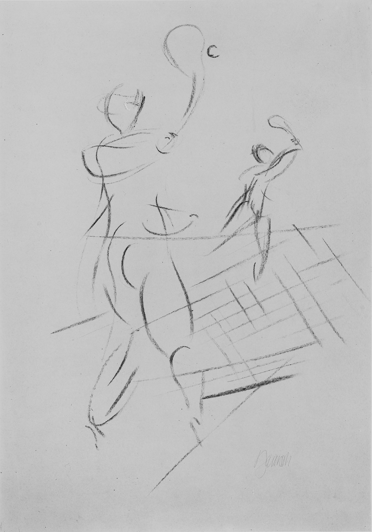 Offenbar eine Ideenskizze, die das Thema szenisch vorstellt. 468-475: Kompositionen, entwickelt aus den neuen Mitteln der Linienfigur. Raumflächen und Körperflächen werden auf konstruktivistische Weise miteinander verschränkt. So entstehen Hell und Dunkel, die Linien schwellen an und verdünnen sich wieder.
