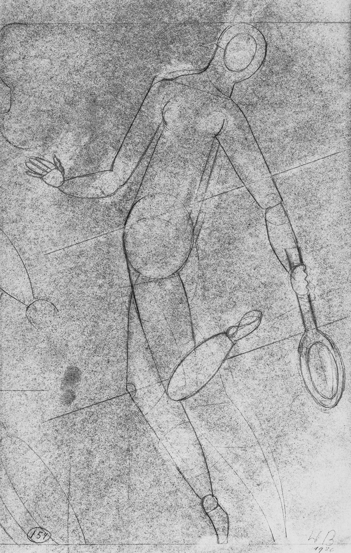 Kohle, gewischt, Bleistift, Konturen z. T. blind vorgeritzt (Pentimenti), fixiert, Einfassungslinien o. und u., auf chamoisfarbigem Zeichenkarton, am l. Rand gerissen (fragmentiert)