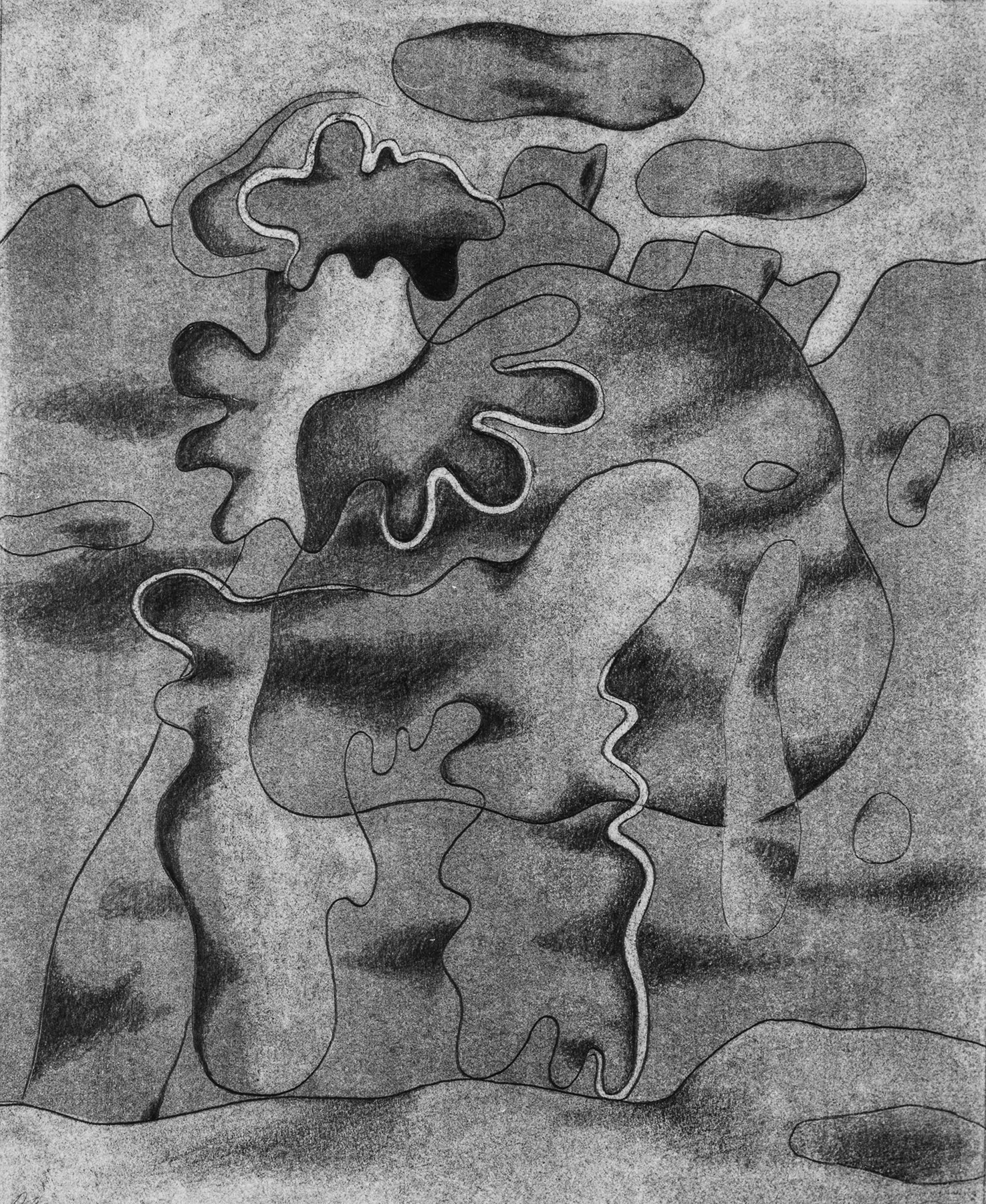 Bleistift, Kohle, gewischt, radiert, auf chamoisfarbigem Zeichenkarton