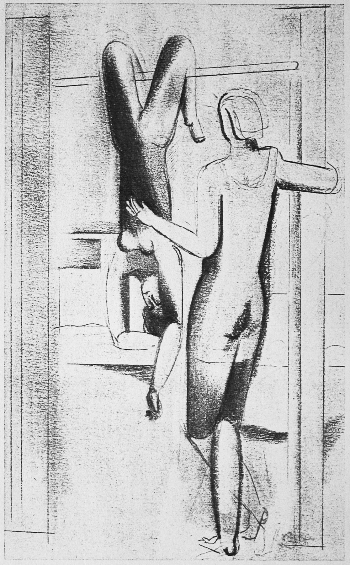 Bleistift, Kohle, gewischt, auf Papier