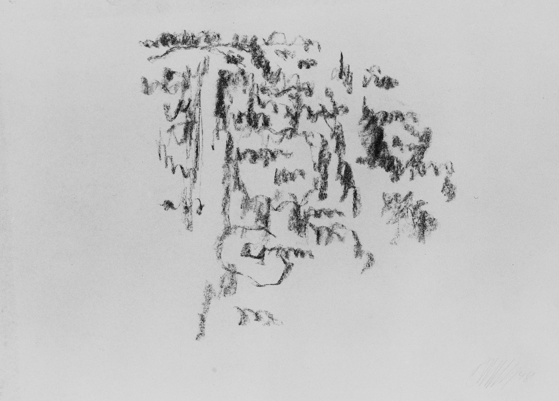 Kohle, fixiert, auf chamoisfarbigem Zeichenpapier
