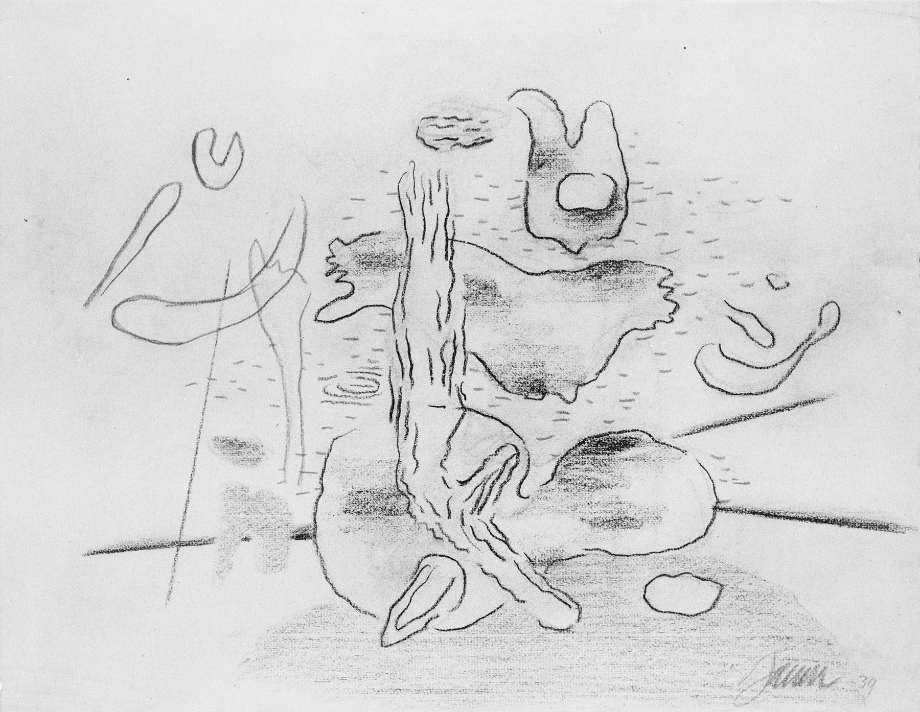 Kohle (Vorzeichnung), Ölkreide in Schwarz, Grau, Braun, Rosa, Orange, auf chamoisfarbigem Ingres-Bütten