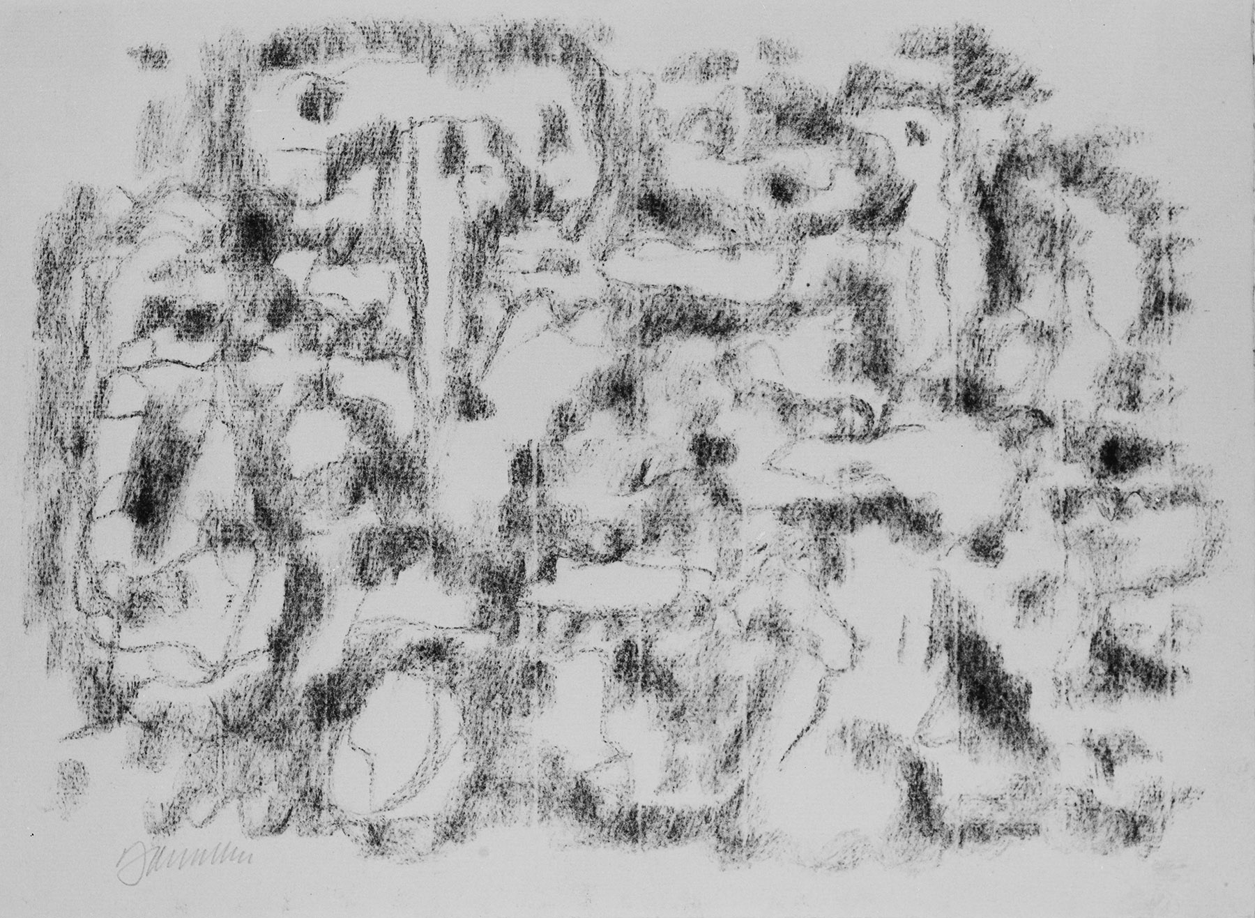 Kohle, fixiert, auf chamoisfarbigem, fast weißem, am Rand o. perforiertem Ingres-Bütten