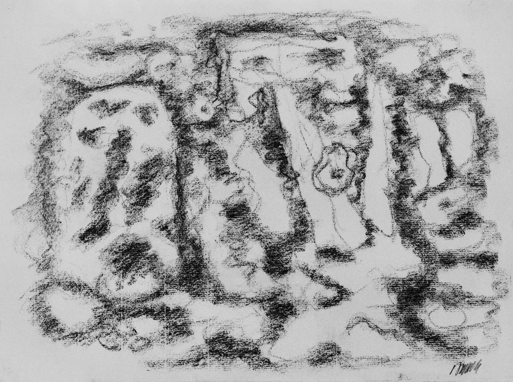 Kohle, z. T. gewischt, fixiert, auf chamoisfarbigem, am Rand o. perforiertem Ingres-Bütten