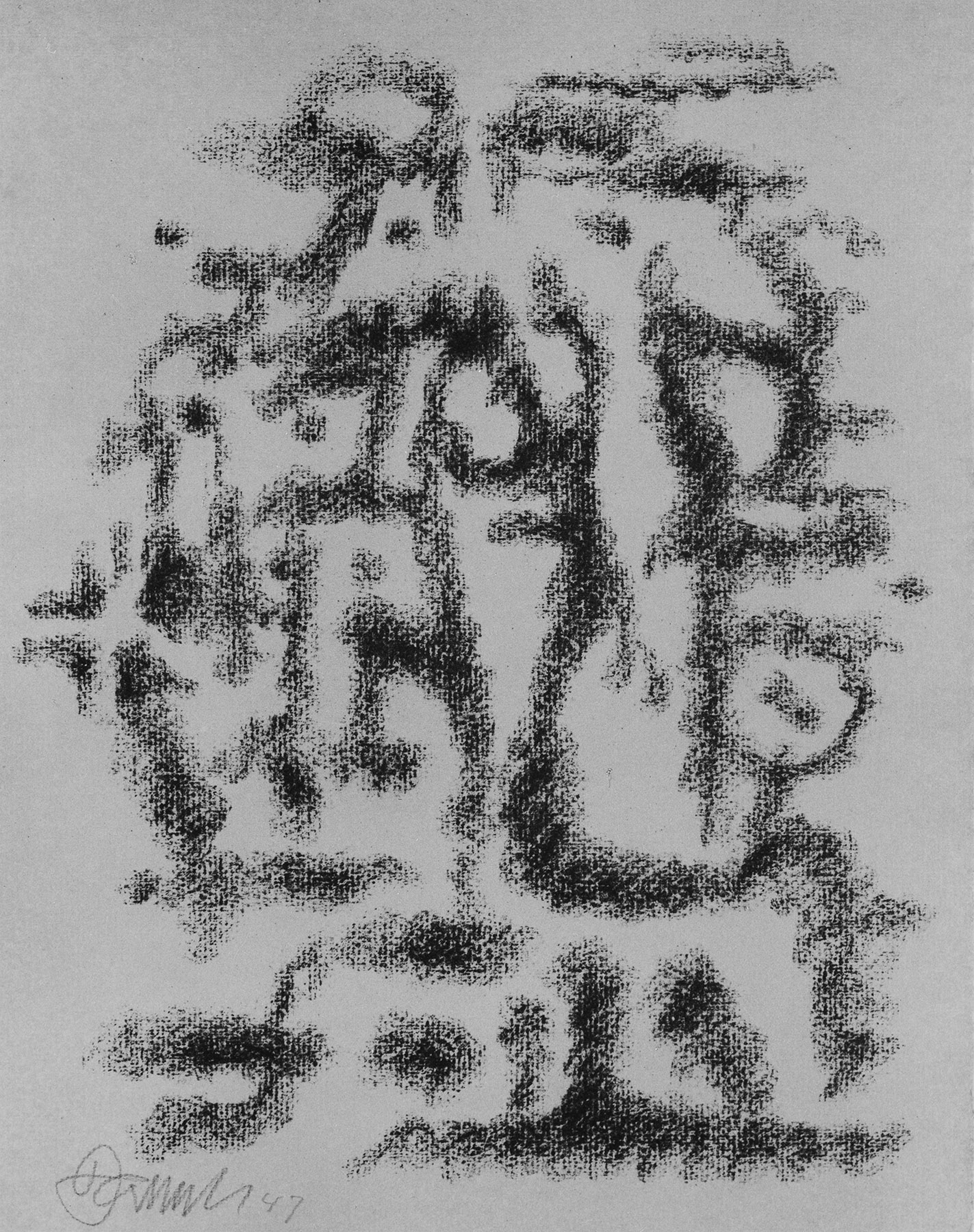Kohle, fixiert, auf beigefarbigem Ingres-Bütten mit Wz. r. o.: INGRES