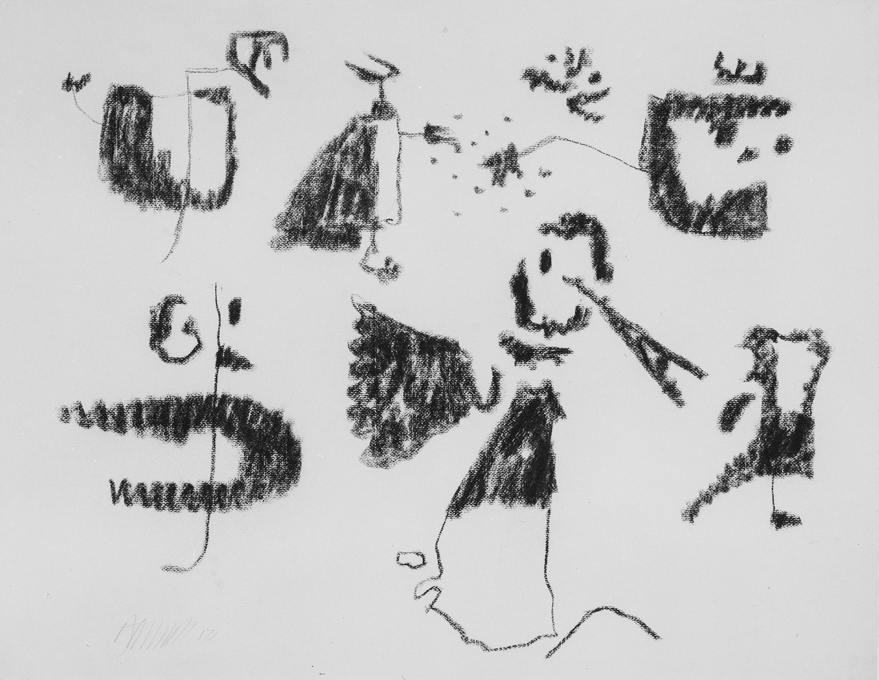 Kohle, fixiert, auf chamoisfarbigem Ingres-Bütten mit Wz. u.: CANSON & MONTGOLFIER FRANCE, l. o.: INGRES und r. o.: Kartusche