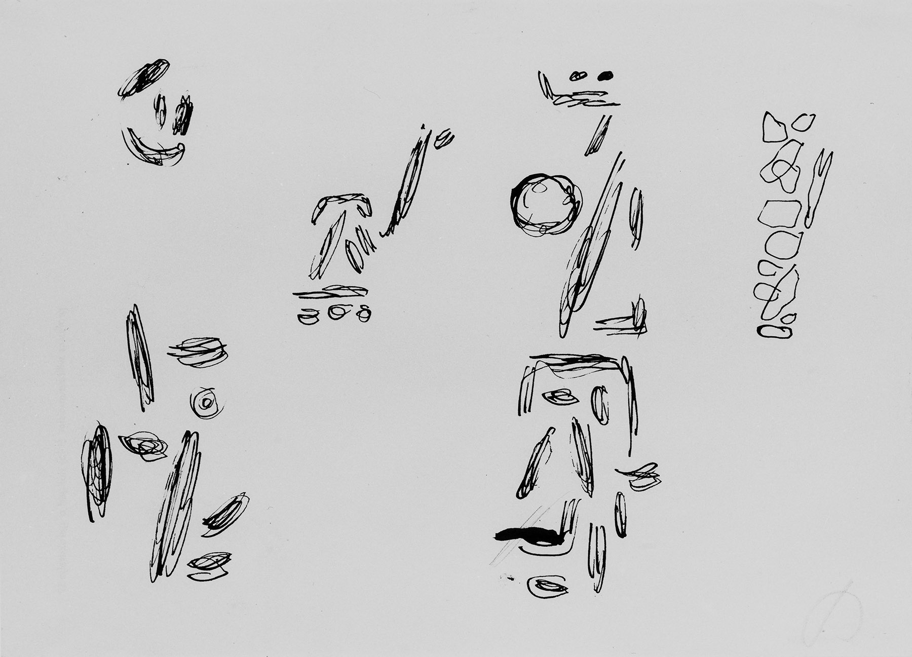 Feder in schwarzer Tusche, auf chamoisfarbigem Schreibpapier, verso Briefkopf von B., Bleistift (Korrektur?)