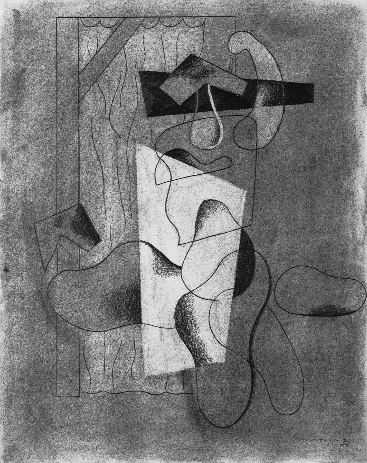 Bleistift, Kohle, gewischt, Ritzkonturen, fixiert, auf chamoisfarbigem, am Rand r. perforiertem Zeichenkarton