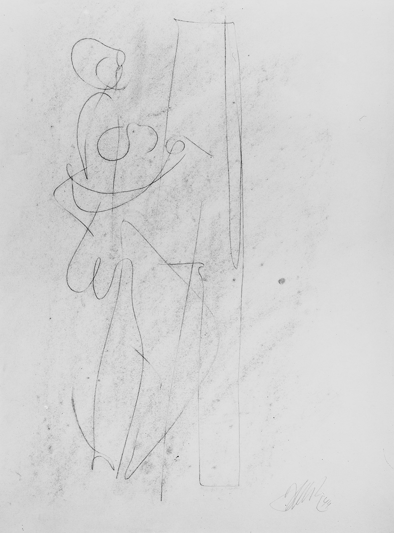 Bleistift, Kohle, gewischt, auf elfenbeinfarbigem, am Rand l. perforiertem Papier