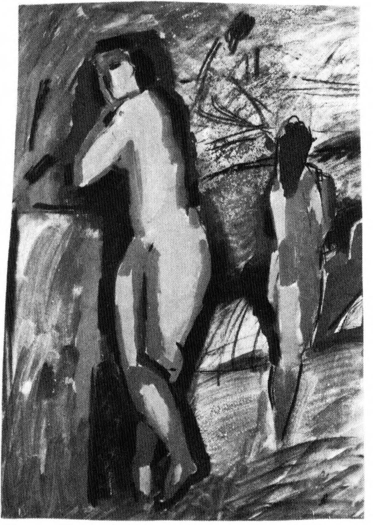 Diese Komposition steht offenbar im Zusammenhang mit der des Ölbildes G 24. Vielleicht ist das Blatt beschnitten. Nachzuprüfen bleibt die Datierung des Ölbildes auf 1909. -  Laut Ausstellungsverzeichnis des Württembergischen Kunstvereins 1954 wurde die Datierung des Gemäldes auf 1909 von B. selbst vorgenommen. (fkb)