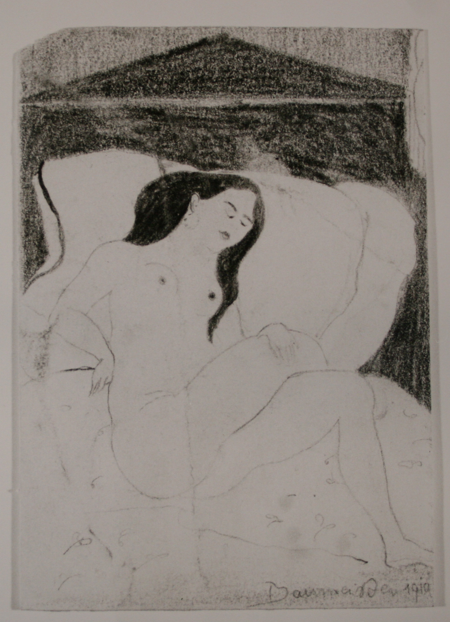 Dieses Blatt läßt sich den vorausgehenden zuordnen, sowohl vom Zeichenstil als vom Thema her. Signatur und Datierung sind eigenhändig, jedoch stilisiert im Sinne des dekorativen Duktus.