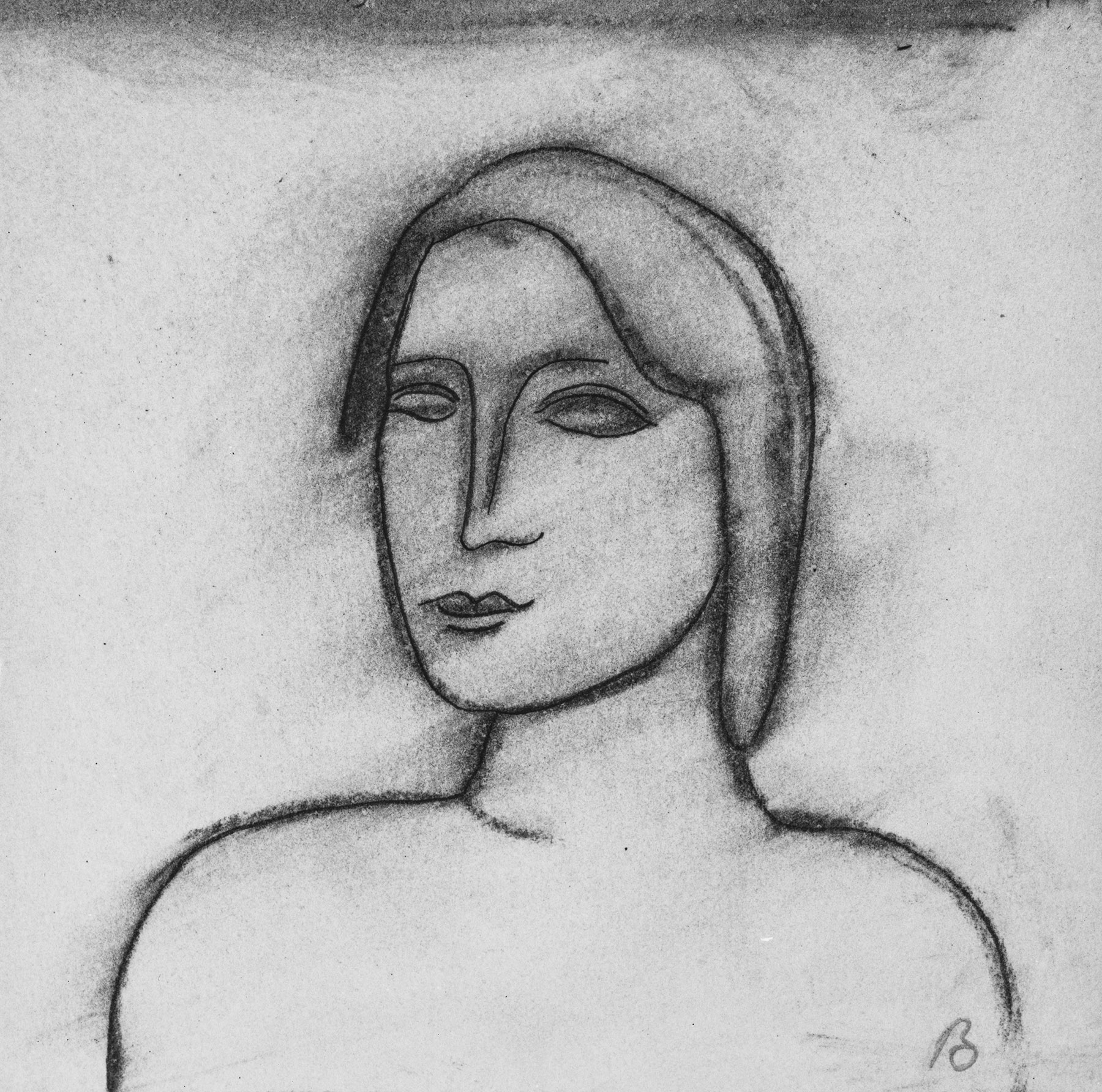 Kohle, gewischt, fixiert, Bleistift, auf chamoisfarbigem, am Rand r. perforiertem, am Rand l. unregelmäßig gerissenem Zeichenkarton