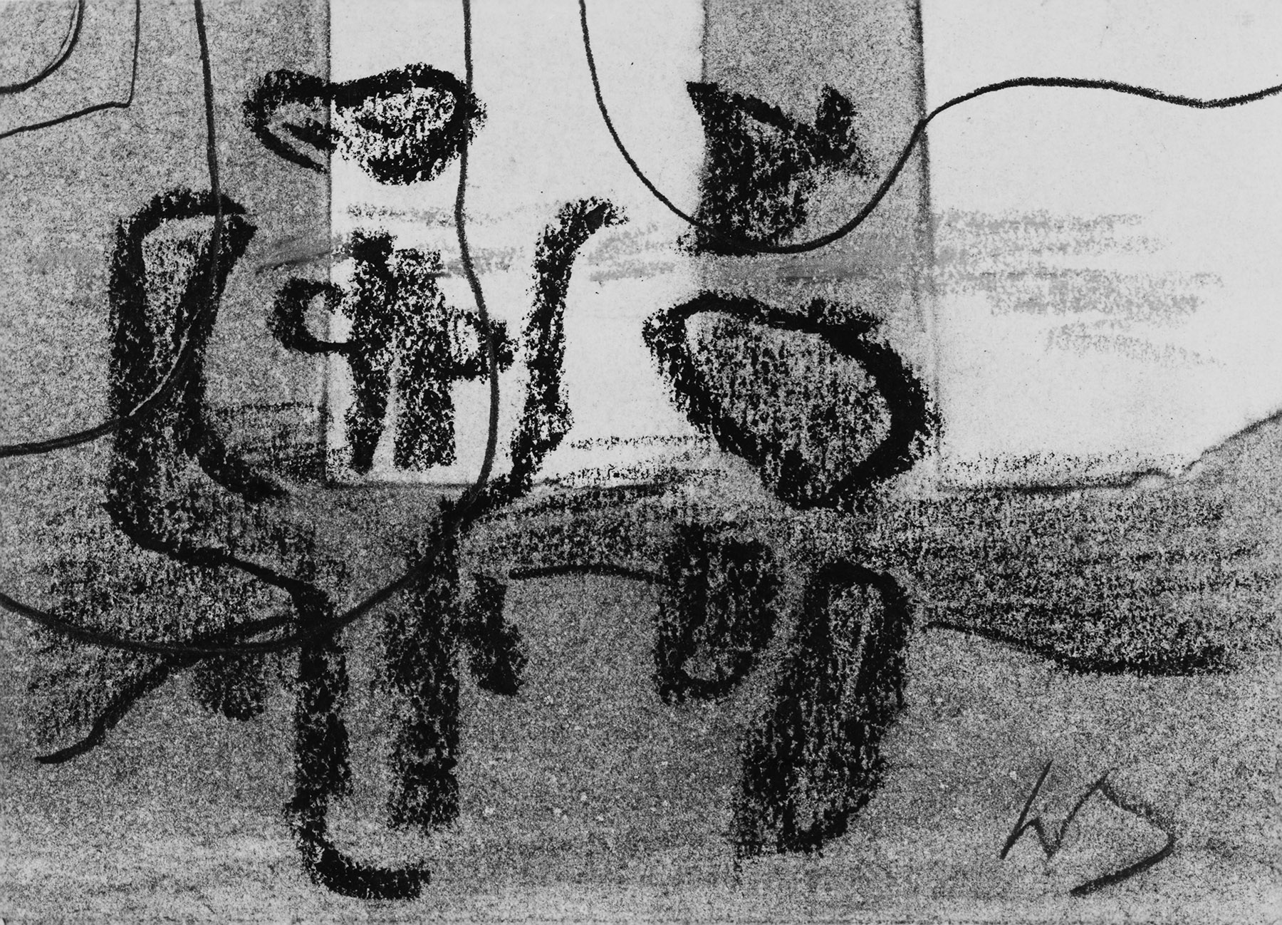 Überzeichnung einer zerschnittenen Kohle-Bleistift-Zeichnung aus den 30er Jahren. - Vgl. die negativ erscheinende Figur in der Gilgamesch-Variante Z 969. (fkb)