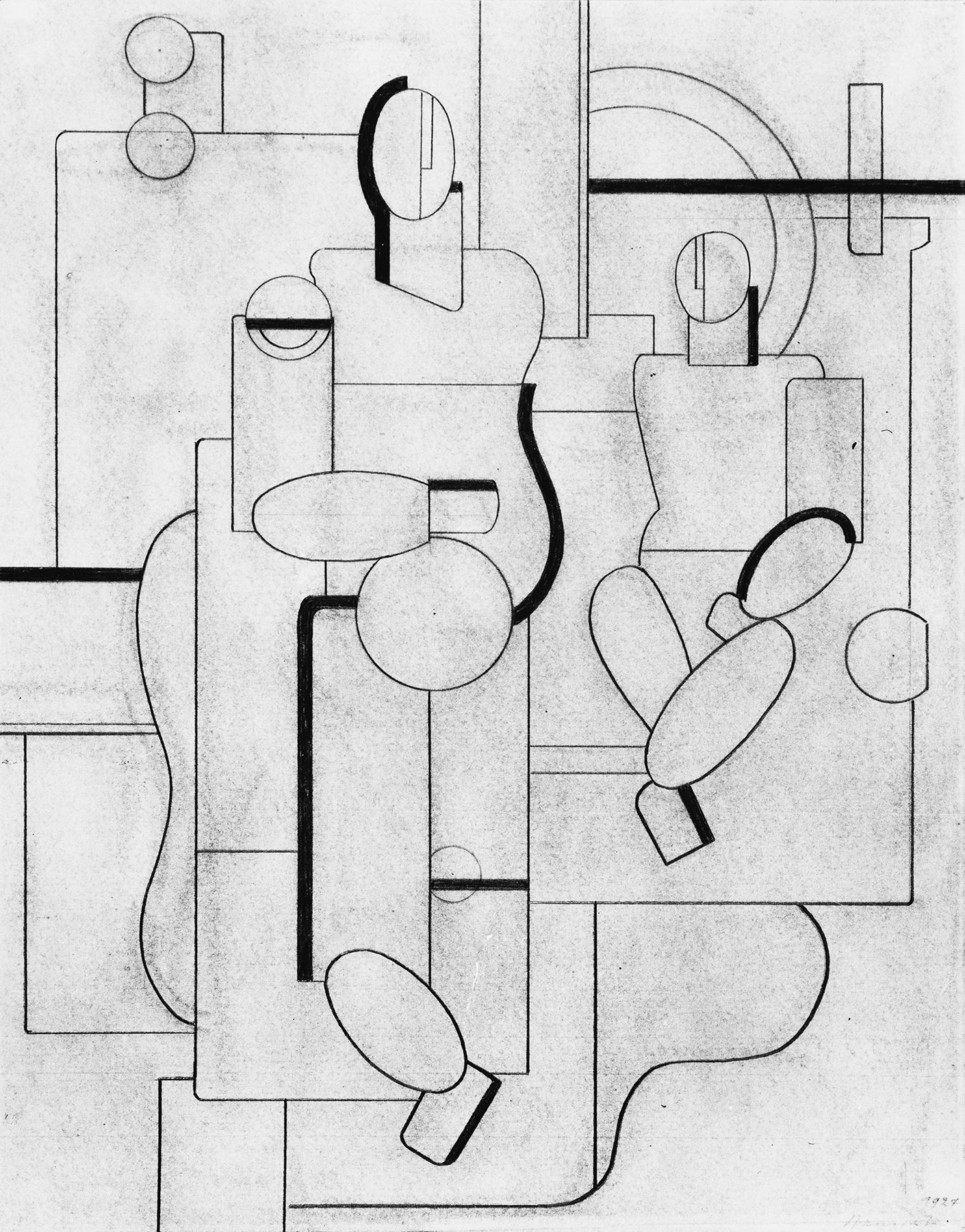 Von B. im Notizheft der „Fotos und Zeichnungen S. 9 aufgeführt: „Musée de Grenoble Mai 35 / Dick und Dünn 1927“. Im Notizheft „Bilder“ S. 4, skizziert und beschriftet: „Dicke u dünne striche /1927/ abgebildet in Flechtheim / Ausst.Katalog“. (fkb)
