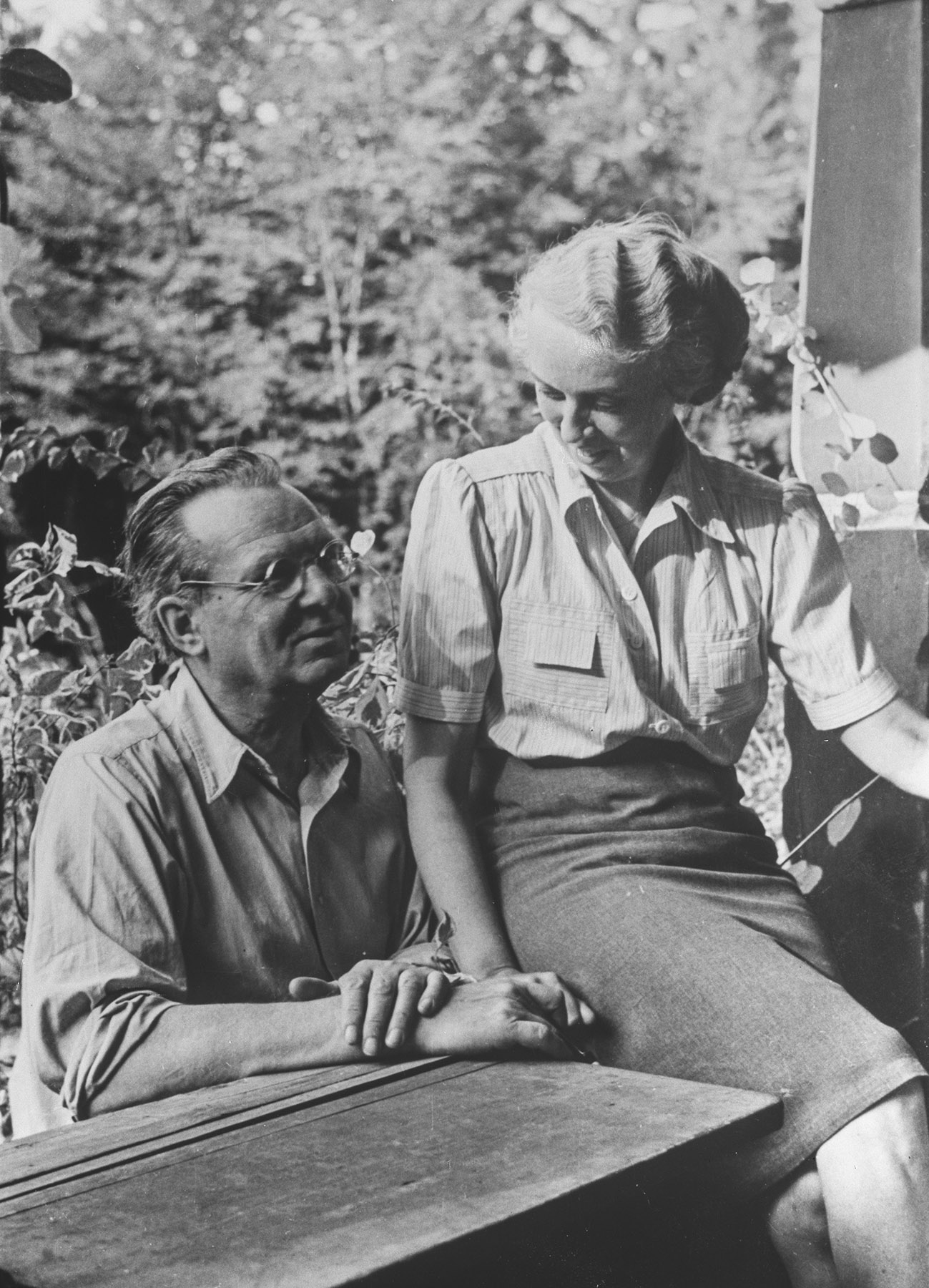 Sophie Taeuber-Arp (1889–1943) war Schweizer Malerin, Zeichnerin, Plastikerin und Designerin für Architektur, Bühne und Tanz. Von 1916 bis 1929 hatte sie einen Lehrauftrag an der Zürcher Kunstgewerbeschule. 1922 heiratete sie Hans Arp. 1926 siedelte sie mit ihm nach Straßburg über, wenig später nach Meudon bei Paris. 1930 wurde sie Mitglied der Künstlervereinigung „Cercle et Carré“, in der auch Willi Baumeister vertreten war, ebenso in der Künstlergruppe „Abstraction-Création“ 1931 bis 1934. 1937 war sie an der Konstruktivisten-Ausstellung in Basel mit Hans Arp und Willi Baumeister beteiligt. 1940 floh sie nach Grasse. Ende 1942 kehrte sie kurz vor ihrem Tod in die Schweiz zurück.