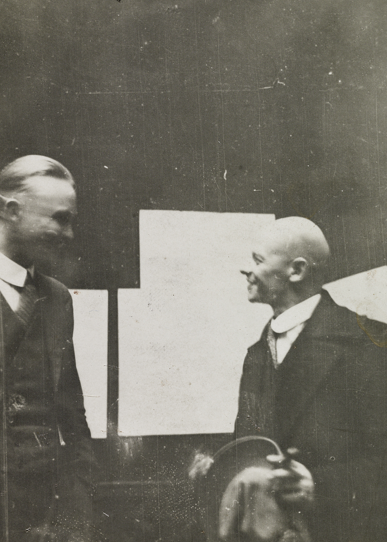 Der russische Maler ukrainischer Herkunft Malewitsch (1878–1935) war Begründer des Suprematismus. 1927 lernten sich er und Baumeister bei der großen Berliner Kunstausstellung kennen, wo sie benachbarte Säle hatten. Malewitsch und Baumeister tauschten auch Gemälde aus.