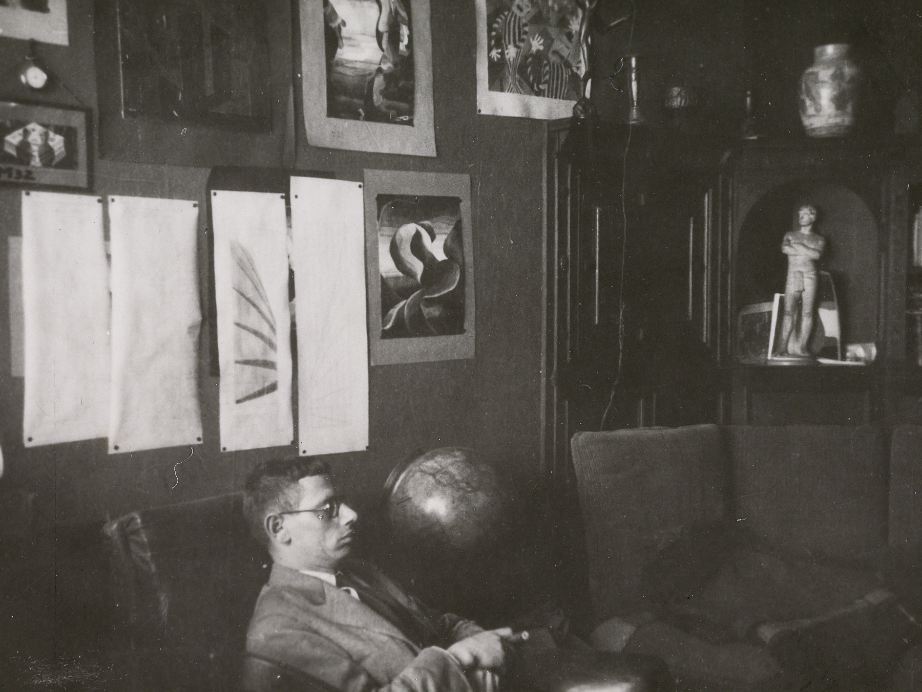 Der ungarische Fotograf André Kertész (1894–1985) wirkte zwischen 1925 und 1936 vor allem in Paris und war über Jahrzehnte in der künstlerischen Fotografie stilbildend. Wegweisend waren auch seine Sachfotografien, die wegen ihrer klaren Einfachheit zu Inkunabeln der Fotografiegeschichte geworden sind. Kertész fotografierte 1926 das Ehepaar Baumeister sowie die Freunde Seuphor, Stemmler und Herburger im Atelier Mondrian.